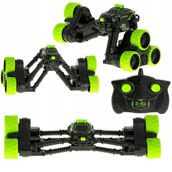 Hat Kerekű, 360°-ban Vezérelhető Távirányítós Kaszkadőr Autó Gyerekeknek 30 Méteres Vezérlési Tartománnyal – Zöld