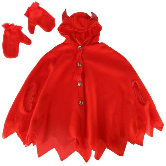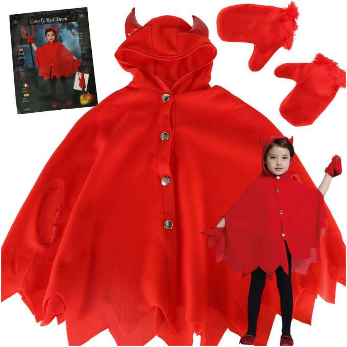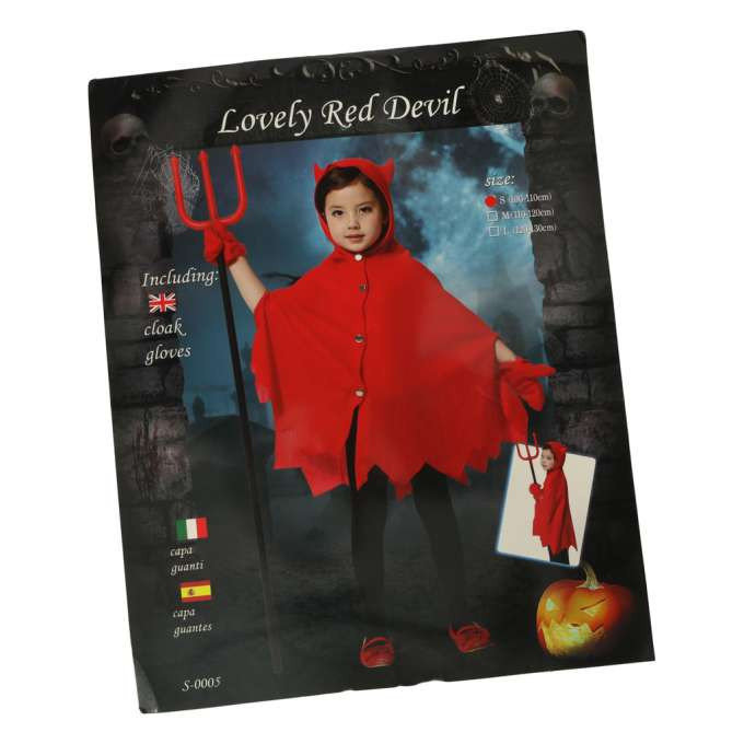 Az ördögjelmez egy díszes parti, Halloween vagy tematikus bulik jelmeze. A készlet tartalmaz egy piros köpenyt kapucnival és szarvakkal , valamint piros kesztyűt. A ruha 100-110 cm magas gyermekek számára alkalmas.