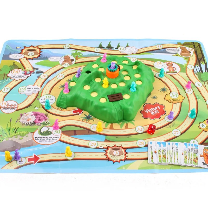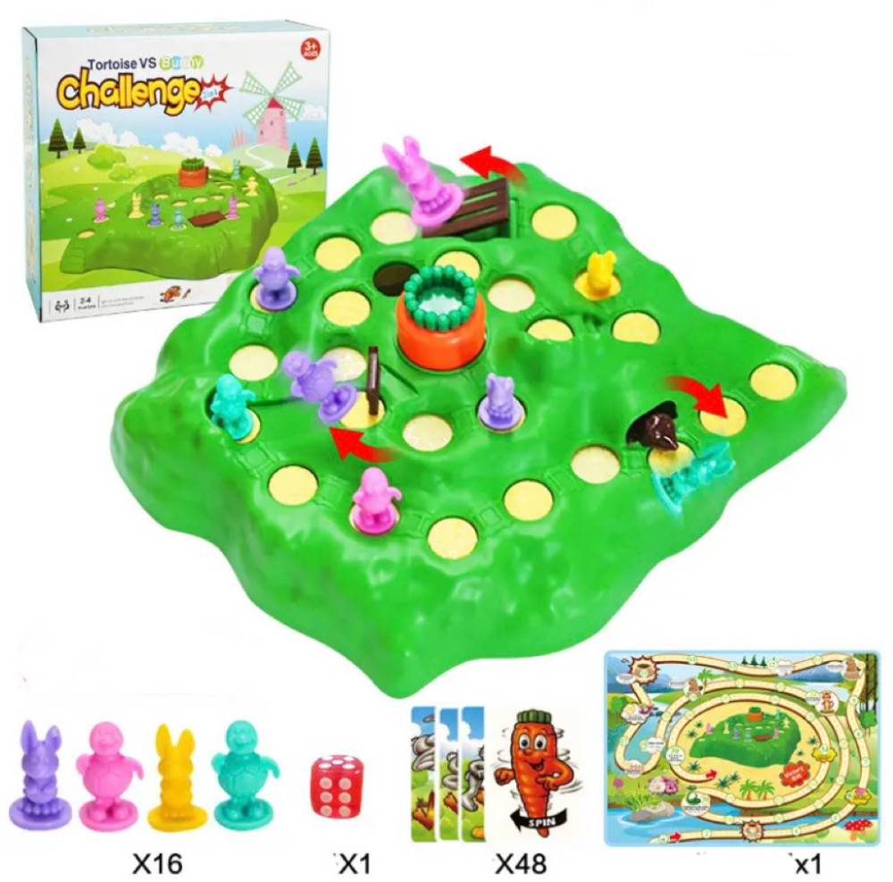 Csomag mérete: 26,5 * 26,5 * 11 cmSúly: 0,43 kgAnyag: Kiváló minőségű műanyagHogyan kell játszani1. Fordítsa meg a játékkártyát, ha úgy találja, hogy fehérrépa, fordítsa el a vezérlőt a játékülés közepén;a játék szívverés, lyukak lesznek a fordulás folyamatában, legyen óvatos Ha úgy találja, hogy nyúl, meg kell néznie, hogy vannak-e kövek a nyúl alatt. Ez egy kő, majd ugorja be a saját színű nyulat egy lyukba;ha két kő, akkor két szóközzel mozgathatja a nyulát, ez három kő Ezután mozgassa a három kerek lyukat;így játszik, és nézze meg, ki a nyúl sétál először a nagy retek közepére, hogy nyerjen
