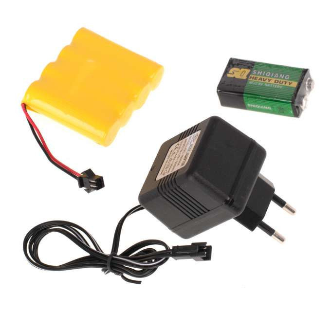 autó - 4,8V 700mAh Ni-Cd akkumulátor; távirányító - 1 x 9V elem