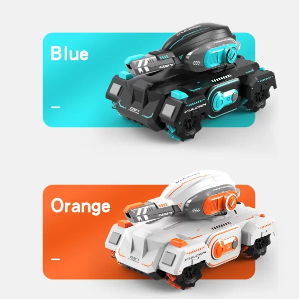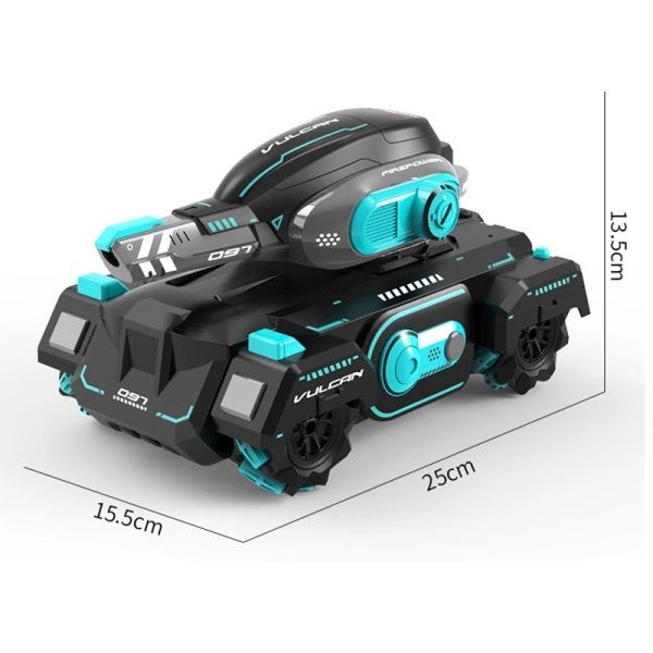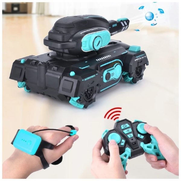Ez a távirányítós tank egy részletesen kidolgozott, könnyen irányítható jármű; kerekei minden irányba vezérelhetők, így jól lehet vele manőverezni a harctéren. Teteje a mellékelt vízbombákkal megtölthető, amiket egy gombnyomásra aktiválhatsz, ha úgy kívánja a csata. A tank fény- és hangeffektekkel fokozza a játékélményt, 360°-os fordulatokat vesz és 2 x 500 db golyó biztosítja, hogy mindig legyen elég vízbombád a harcmezőn.
