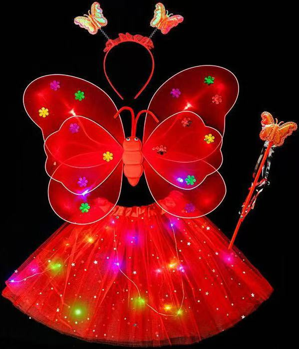 VilágÍtó pillangó jelmez fejpánttal es varázspálcával piros