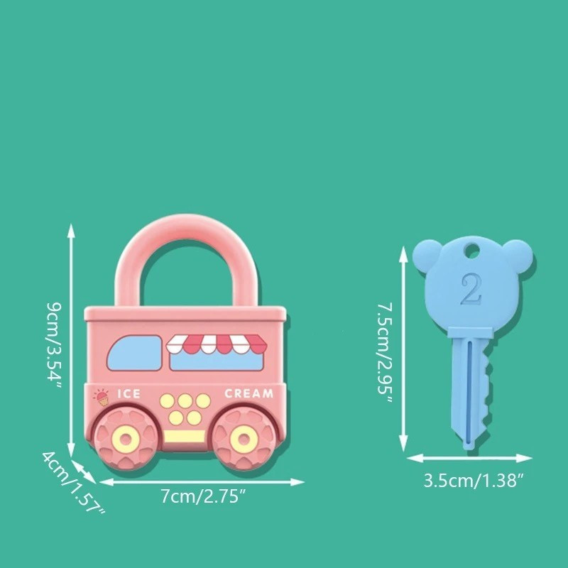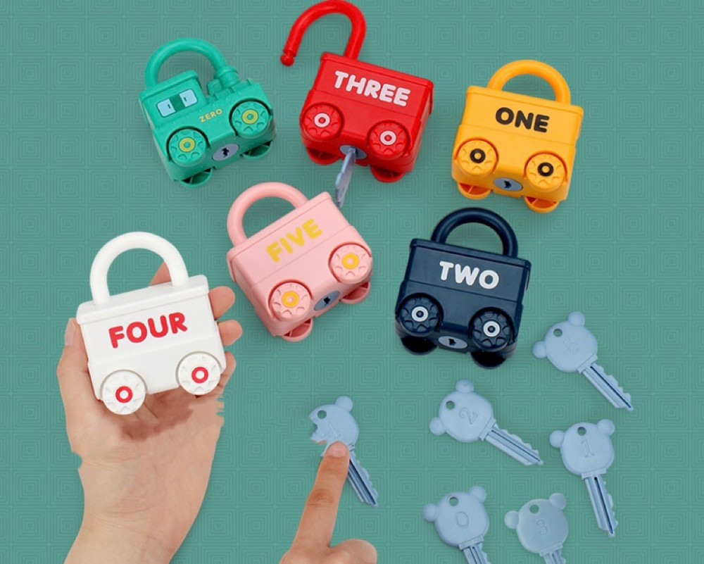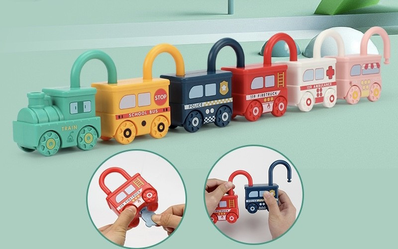A játékkészleti a zárás és feloldás készségeinek elsajátítását és gyakorlását, valamint serkenti a memória fejlesztését és fejleszti a finommotorikát.